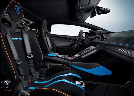 通过轻量化的方式结合功能性的设计,表现纯粹的性能。虽然让人联想到Super Trofeo EVO的轮廓,Huracán STO的外观设计经过了截然不同的升级,不仅优化了车辆空气动力学系统,更是在车身面板中使用了超过75%的碳纤维。特别值得注意的是经过特殊设计的车身部件——“Cofango”,保险杠和引擎盖合二为一,最大限度上提高了前部空气动力学性能和轻量化。