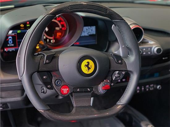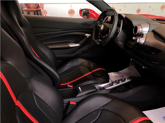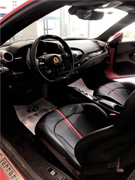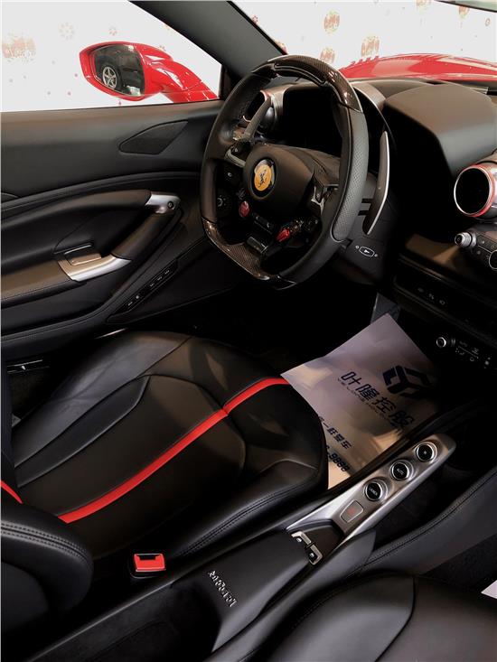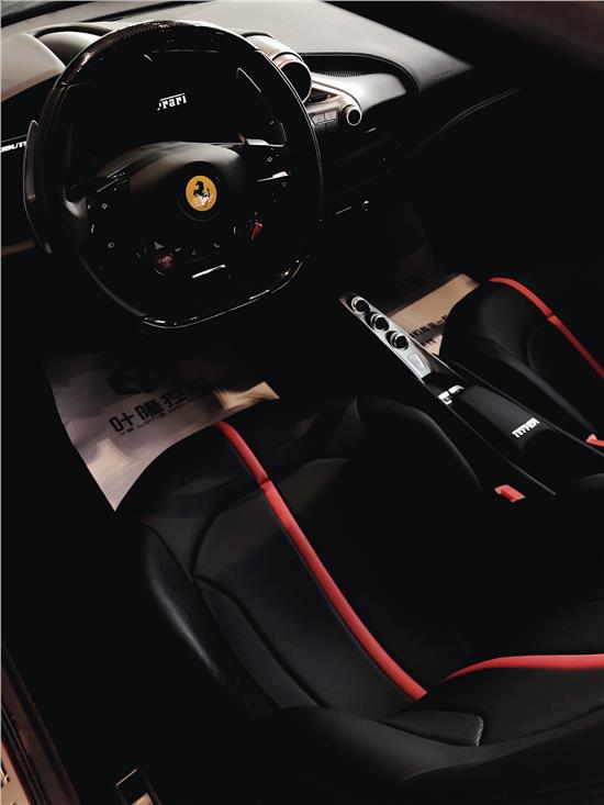 内饰的设计也充满战斗感,新车采用了法拉利家族一贯的设计风格,黑红两色的搭配,运动味十足。平底的方向盘造型也很前卫,看起来很有跑车范,两侧集成了车上的主要功能按键,搭载新一代的人机交互系统,操作起来相当方便。值得一提的是这款车在副驾驶也设计了一款7英寸的触控屏,显得非常豪华。和其他跑车一样,这款车换挡采用的是按键设计。