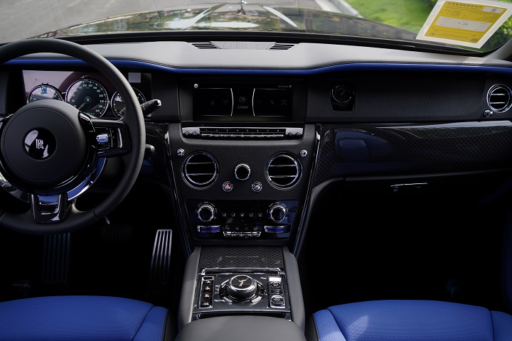 内饰方面劳斯莱斯库里南内饰延续了全新幻影的设计风格,整体用料依旧一如既往的奢华高贵,中控采用大面积实木打造,配合方向盘上的实木点缀,既复古又豪华。中控屏幕尺寸为10.2英寸的屏幕,轻触车门把手上按键就可以电动关闭,后排控制台与前部是断开的,在狭窄环境停车后排乘客可以选择任意一侧下车。