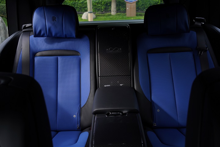 座椅设计彰显劳斯莱斯汽车的品质与工艺,简洁而现代的马蹄铁图案,强调座椅的支撑力。整体椅背由一整张皮料精心塑形,打造出极为立体的表面。后排两个独立座椅之间设有后排中央固定扶手,可容纳带有劳斯莱斯威士忌酒具的酒柜、香槟酒具和冷藏箱,为后排乘客带来旅途中的终极享受。