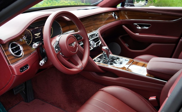 21款宾利飞驰中控台造型更偏复古,而用料则是这台车最大的亮点。中控台大面积的胡桃木饰板仿佛玉石一般润泽,让人非常舒心。三幅式方向盘由胡桃木与真皮组成,握感相当棒。