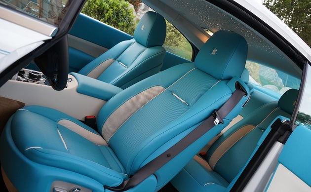 魅影不仅仅是考虑到前排驾驶员的感受,后排乘客的腿部空间并不像想象中那么狭小,而且还可以享受上下分区的空调送风,乘坐同样舒适,不会有坐小板凳的感觉。Lawsless魅影内最大的亮点是星空饰顶,“繁星”由1340条光纤组成,原理并不难理解,包括这繁星点点也全是纯手工制作。
