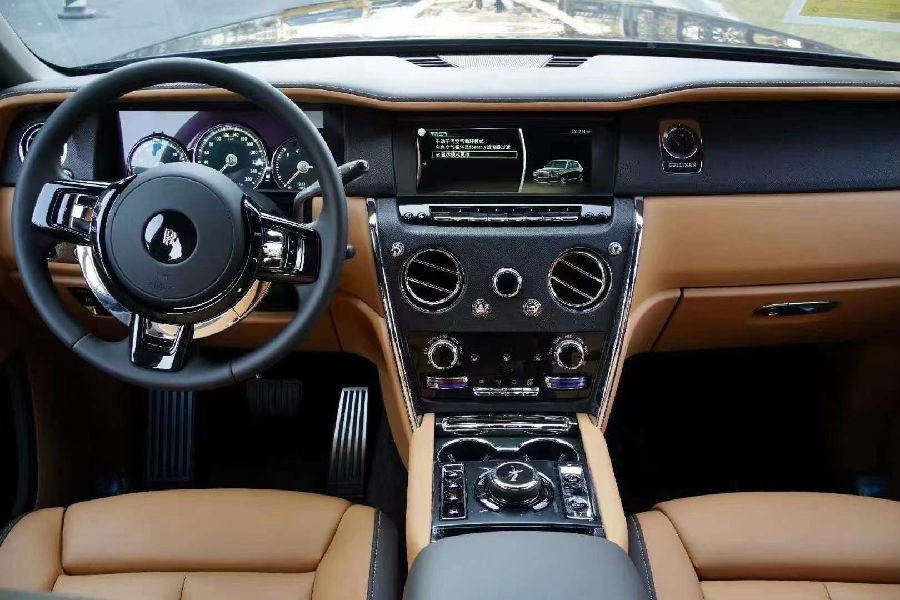 劳斯莱斯库里南的内饰遵循了劳斯莱斯一贯的设计风格,造型经典复古但不失科技感,大量实木饰板的采用,提升了内饰的档次感。而大面积真皮包裹的设计,则成功的营造出奢华舒适的内饰氛围。现车三种颜色的内饰设计,使整车奢华优雅又不失灵动的气氛,也体现了设计师的独具匠心。