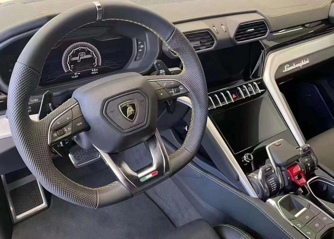 兰博基尼Urus三幅平底的方向盘为全新样式,皮质和Alcantara材质组合给了它绝佳的视觉效果和手感,中控点火按键上的“红盖头”则延续了兰博基尼传统,让你有一种启动的仪式感。