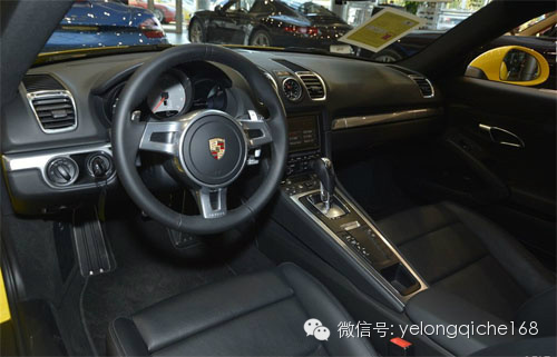 内饰:内饰配置丰富 新款Cayman的内饰延续了当前保时捷跑车设计的风格,整体显得尊贵得体。在装配置方面,新Cayman提供了选装自适应巡航定速控制系统(ACC)和免钥匙出入及驾驶系统等选装配置。内饰大量使用了保时捷家族式的设计,整体感觉既动感,又有层次感。特别是材料的选择上面,非常的高档,让整车的内饰倍显尊贵。Cayman不同于911的后置发动机,而采用了中置发动机,使得它具有前后双行李箱设计,令这款双门跑车最多可提供410L的储物空间。其中,车尾的行李箱容量为260L,配合掀背式尾厢门设计,可提供最高1.95米的净空高度。