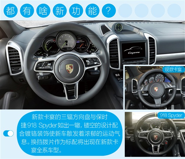 此次发布的新车包括四个版本,分别为卡宴柴油版、卡宴S版、卡宴Turbo版和卡宴S E-Hybrid版,其中卡宴S E-Hybrid是继Panamera S E-Hybrid和918之后推出的第三款插电式混动车型。