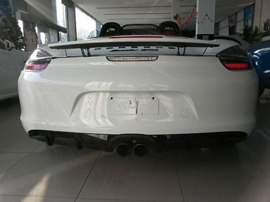 实拍Boxster GTS选装了【20英寸911 Turbo车轮,选配价为1.76万】和【轮毂盖,选配价为0.22万】,Boxster GTS配备的是GOODYEAR固特异品牌EAGLEF1型号的轮胎,前后轮胎尺寸为235/35 ZR20和265/35 ZR20,后轮采用更为宽敞的轮胎设计,是注重采用后驱动力的体现。