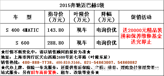 叶隆平行进口车试点门店奔驰迈巴赫S级少量现车热卖促销,详情咨询热线:400-888-7738,展厅地址:上海市闵行区天山西路2688号近七莘路(叶隆东辰)