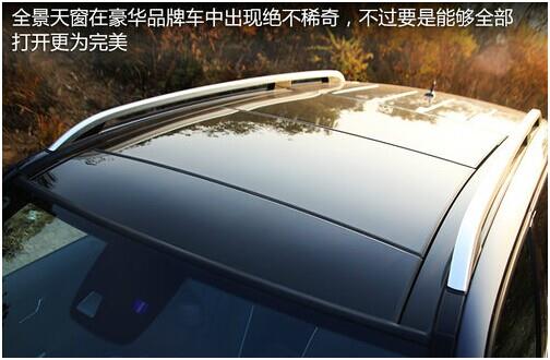 在豪华品牌的车型中全景天窗的应用已经屡见不鲜,新款GLK出现这样的配置并不觉得奇怪,只不过全景天窗不能整片打开确实不够人性化。新款GLK更是全线标配19寸轮毂,采用了前后不同宽度的轮胎,马牌的全地形轮胎在越野排污能力出色,不过噪音的处理上还有待加强。