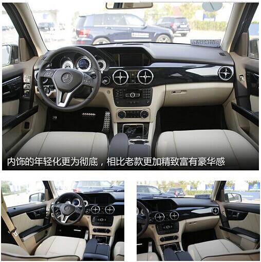 新款GLK在内饰部分与老款相比简直就是天壤之别,其实这种年轻化色设计已经是当下设计趋势了,再有用料的选择也表明这次奔驰是带着诚意有备而来,除了米色的内饰外还有黑色的内饰可选。