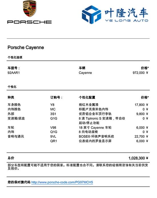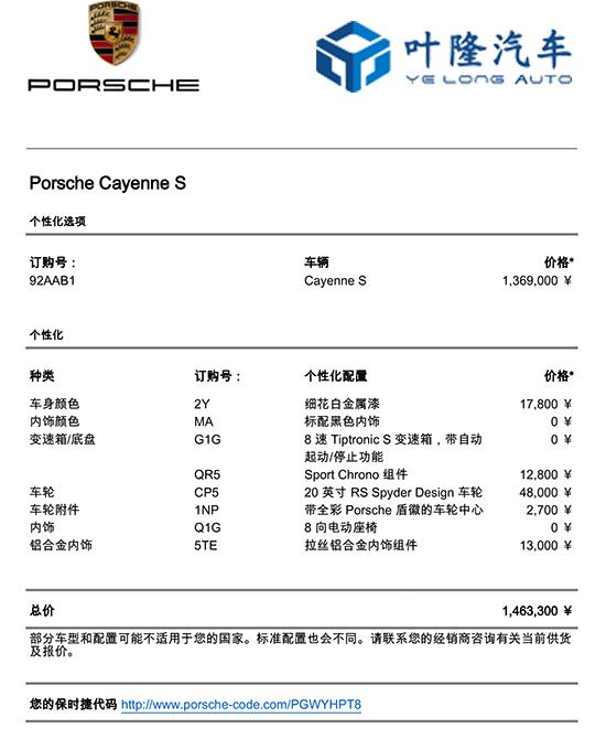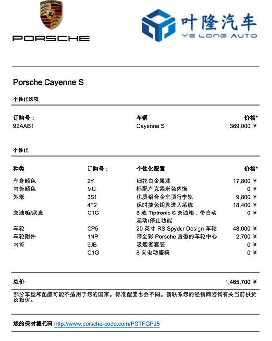 轰轰烈烈的2015新车攻势将展开,国际车展已经结束,可是叶隆的特惠活动没有结束,现在起购新款卡宴最低价,专业四驱品质,畅享暴躁激情动听声浪。叶隆保时捷定制中心为反馈广大消费者的支持,特别推出了国际车展政策提前享受的活动,就是为了让消费者不用在在车展的人声鼎沸中等待和观望,现在即可在舒适的展厅定购自己心仪的爱车!购车送豪华大礼包!车价咨询赶紧拨打电话:400-888-7738 个性化经典现车配置详情看下文: