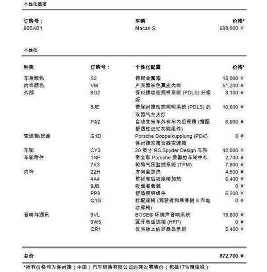 Macan S 3.0T 铑银/米 | 68.80 | 87.27 | 83.77 | 3.50 | |