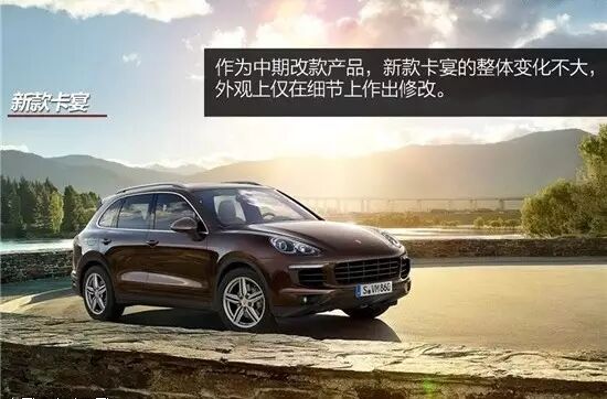 外观方面: 保时捷 卡宴前脸、尾部造型采用小变化设计。前脸进气格栅拥有导流翼片,可更好的引导空气进入冷却系统并使得整车显得攻击性十足。