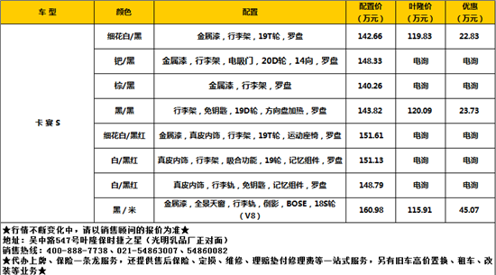 近日获悉,上海最大保时捷现货中心,叶隆保时捷之星卡宴S全能城市豪驾,钜惠45.07万,原装进口高性能齐配置,配置丰富颜色可选择,即日在上海叶隆购车可享夏日金融政策:最低可零首付,低利率仅4-4.5个点,快速贷款仅需3-5个工作日,还送车价、保险、购置税、上海大牌!更多精彩尽在叶隆保时捷之星,机会难得欲购从速,具体详情欢迎来电咨询,咨询电话: 400-888-7738