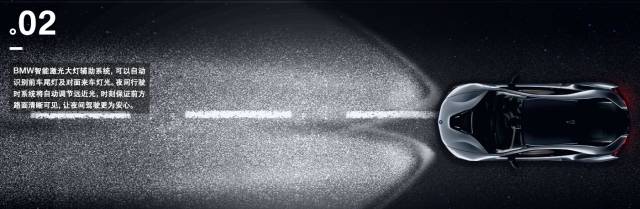 BMW只能激光大灯辅助系统,可以自动识别前车尾灯及对面来车灯光。夜间行驶时系统将自动调节远近光,时刻保证前方路面清晰可见,让夜间驾驶更为安心。