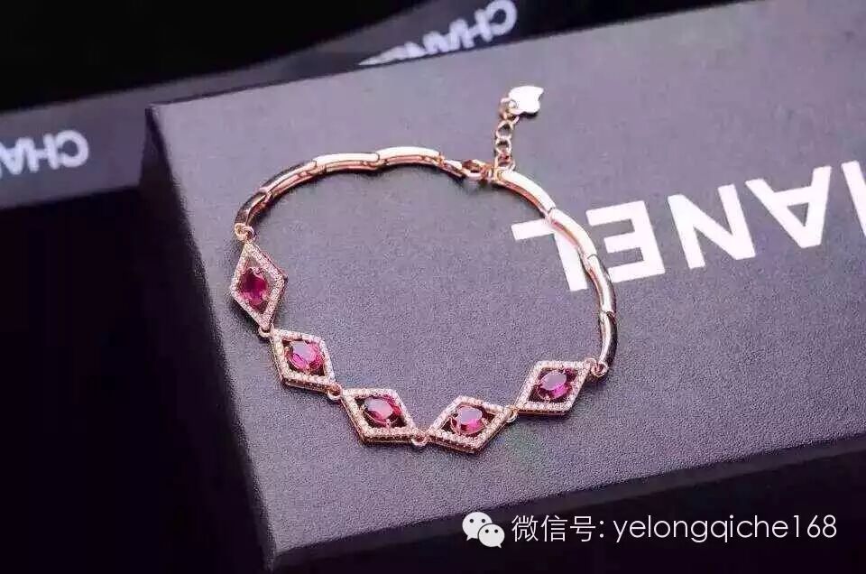 天然斯里兰卡镁铝石榴石手链,4*6毫米五粒镶嵌超美艳的玫紫色,925银电镀玫瑰金白金两色。
