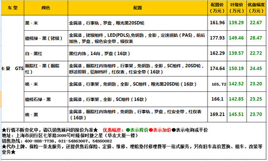 它颠覆观点,改变认知,力大无穷,貌美如花,它是战斗机器,也是橱窗中的花瓶,它可以翻浆甩泥,也可以亭亭玉立。它是保时捷卡宴,它是GTS。叶隆保时捷之星现车优惠,欢迎新老顾客前来选购!