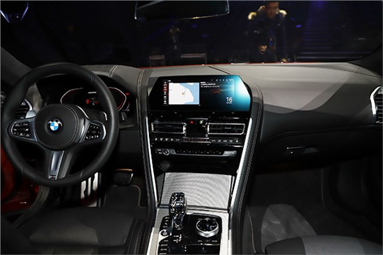 内饰方面,宝马8系带来了全新的布局,中控台中间区域两侧的装饰条从上到下贯穿,将中央屏幕、功能按钮以及挡把区域连成了一个整体,全新的iDrive 7.0系统还将配合12.3吋全液晶仪表盘和10.25吋中央触屏以及HUD抬头显示系统呈现全新体验。