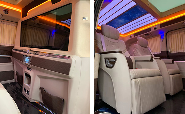 豪华改装MPV更是根据实际需求灵活改变,满足商务接待、洽谈、出游等各种类型的需求使用。内 饰改动也推陈出新,整体视觉感受及乘坐体验均有显著提升