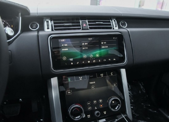 路虎揽胜的中控设计,直接明了科技感强,各种关键功能控制触手可及,驾乘非常方便,材质高级于细微之处呵护您的感受,尊贵品质尽显。内部配备了双中控屏幕,科技性强,方向盘有触摸式的多媒体按键,操控更方便。