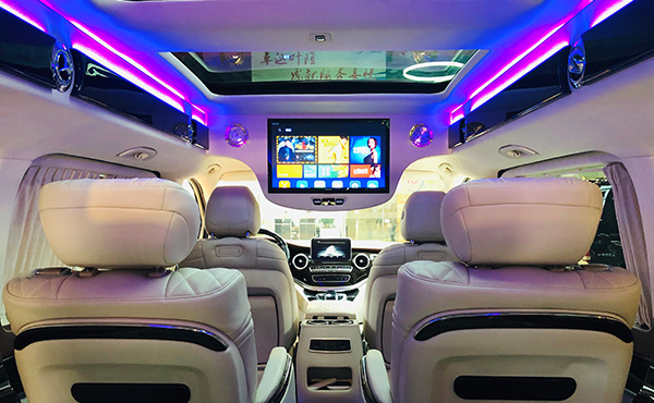 至长3430mm的轴距,7座座椅布局,不仅满足商业接待需求,超大的空间内,无论是孩子的玩具还是一家人出游必需品都能轻松容纳。奔驰V260L豪华改装版的车内氛围灯系统,不可谓不豪华,巨大的灯带中央设计的造型十分的有气势,映衬着十分高档的Alcantara 包裹,将奢华的质感和精密的做工凸显的淋漓尽致。[上海叶隆房车]