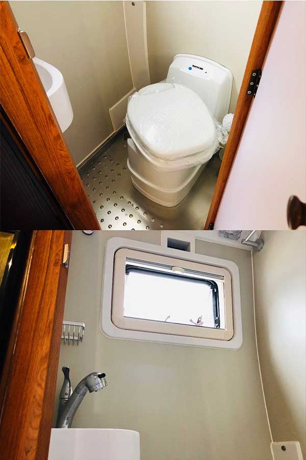 这款依维柯旅居车一体式卫生间,直接杜绝渗水发霉问题。卫生间空间非常宽裕,梳妆镜、洗脸盆、置物架、淋浴头、换气扇、坐便器等房车标配齐全。叶隆房车中心现车