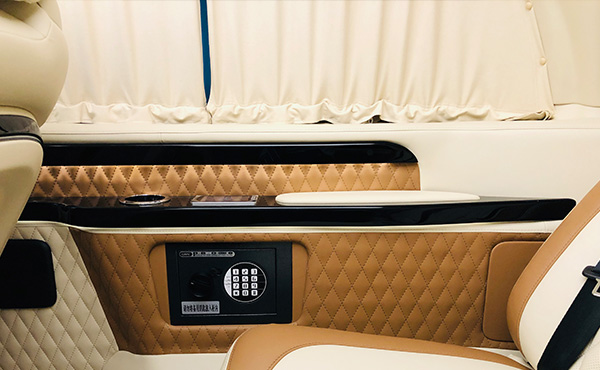 这款奔驰威霆改装商务房车采用高顶的设计思路。硕大的金属三叉星奔驰LOGO与高光泽中网相融合,相得益彰。凌厉的楔形天使翼型LED照明灯,既符合商用车的沉稳大气,又不乏奔驰轿车的动感和热情。流线型的动感车身和18英寸双5辐铝合金动轮毂,舒适和动感完全集于一身。