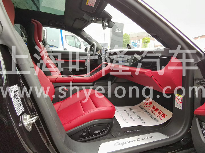 保时捷纯电动汽车taycan turbo驾驶舱内,独立的曲面组合仪表处于仪表板的最高点,凸显了以驾驶者为中心的设计理念。中央的10.9英寸信息娱乐系统显示屏和选装的副驾驶侧显示屏组合成一个整体的黑色面板外观玻璃带。此外全新Taycan标配了固定式全景玻璃天窗和高级四区恒温空调,以提升乘客的舒适性。