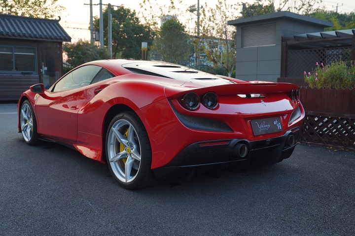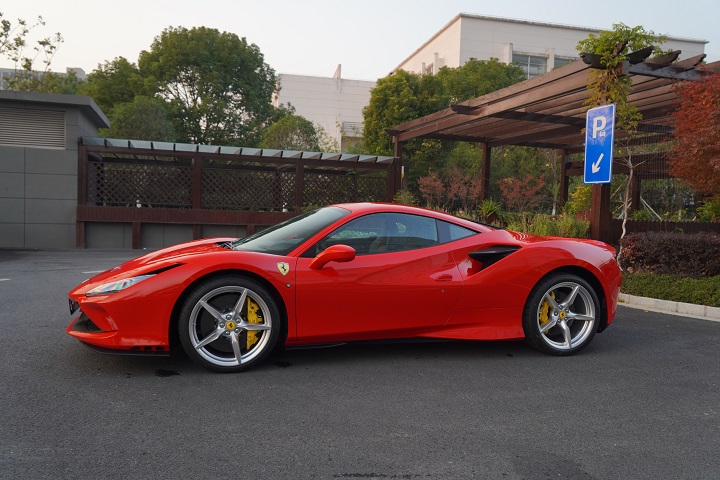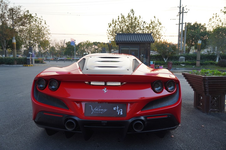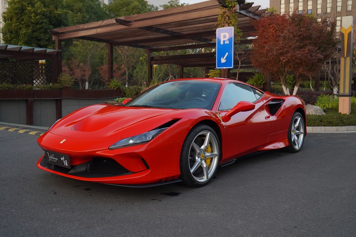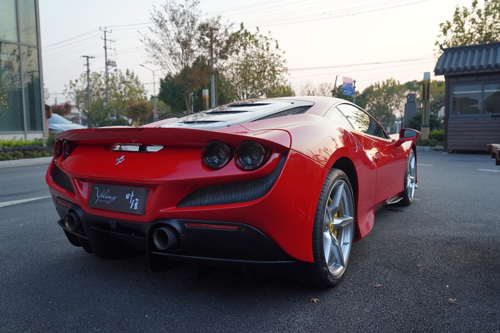法拉利F8 tributo,定位跑车,叶隆展厅实拍。外观采用经典的红色车身风格,非常时尚。前脸采用家族式的设计语言,引擎盖上的凹面处理精致,前大灯采用犀利时尚的造型,日间行车灯设计精致,下格栅采用网状的设计,前脸处理运动。