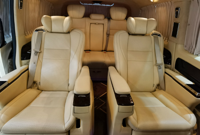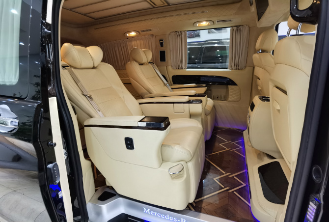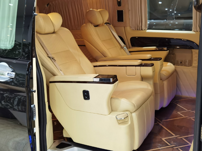 全新奔驰威霆第三排座椅为独立航空座椅,集成加热、、旋转等功能。在您的商务旅途中绝对让您不觉劳累!地板则是采用了古巴影木的材质,彰显尊贵!