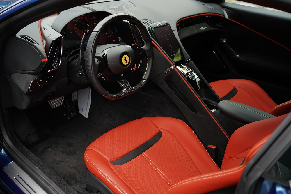 法拉利的新款紧凑型GT设计为跃马的新型中前置发动机双门轿跑车,传达了意大利式的甜蜜生活理念,而没有其通常驱动器的夸张、大转弯和招摇。Roma 的驾驶舱采用近乎对称的结构,使空间和功能的分布更加有机,让乘客不仅感到舒适,而且感觉参与了驾驶。